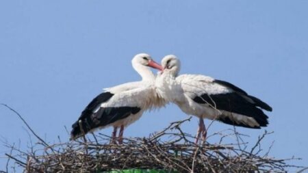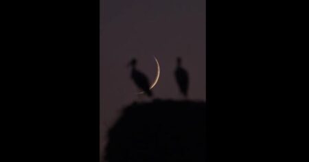 عاشقانه لکلکها با کمان ماه نو در روستای کپر جودکی