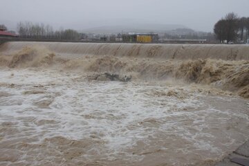 بارش شدید باران و خروش رودخانه گلرود در بروجرد+تصاویر